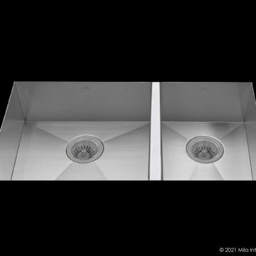 MILA FLATIRON Double Bowl Under Mount 31 x 18.5 Kitchen Sink – Satin Brushed SS