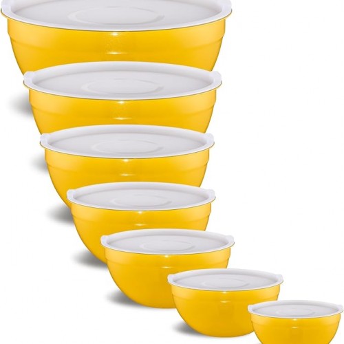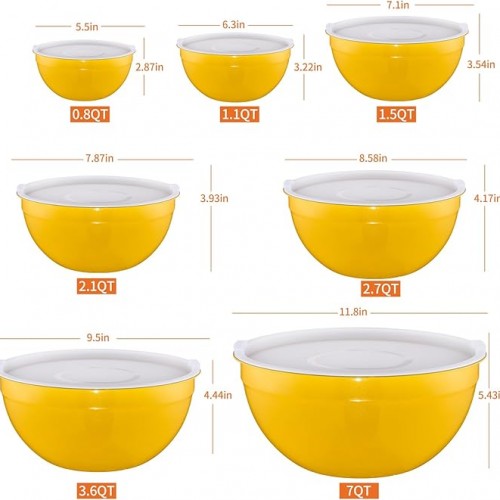 Yellow Mixing Bowls With Airtight Lids,Stainless Steel Bowl,Salad Bowls 7 Piece Colorful Nesting Bowl Yellow Kitchen Accessories,Size 7,3.6,2.7,2.1,1.5,1.1,0.8QT Stackable Design