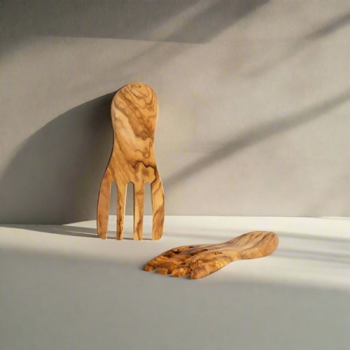 Handmade Olive Wood Salad Servers, Set of 2