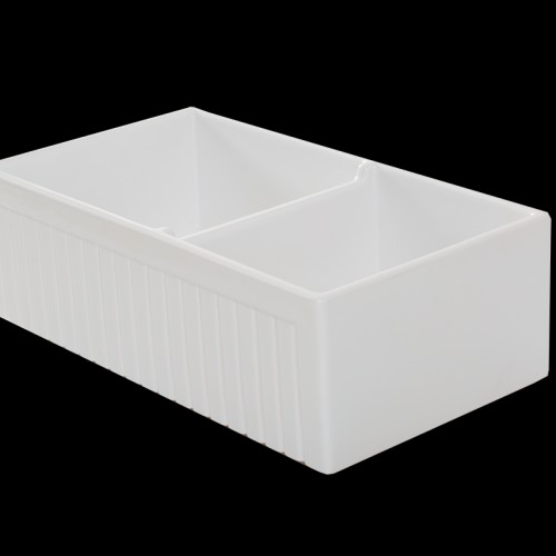 January Special ! – Double Fluted 2/3 1/3 Offset Apron Sink – 838 x 460 x 257mm White