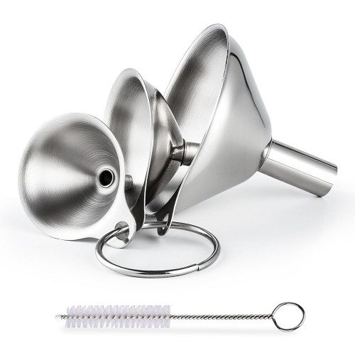 Supercenter Kitchen Funnel, Stainless Steel Mini Funnel, Set of 3, Perfect for Transferring Liquids, Oils, Powders, Spices, with Round Ring and Cleaning Brush