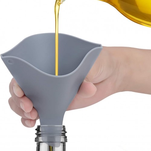 Collapsible Silicone Funnel for Filling Bottles – Fan-Shaped, Foldable, Food Grade, Gray