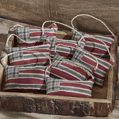 Millsboro Log Cabin Patch Burgundy Navy Tan Country Chair Pad 14×14 – VHC Brands