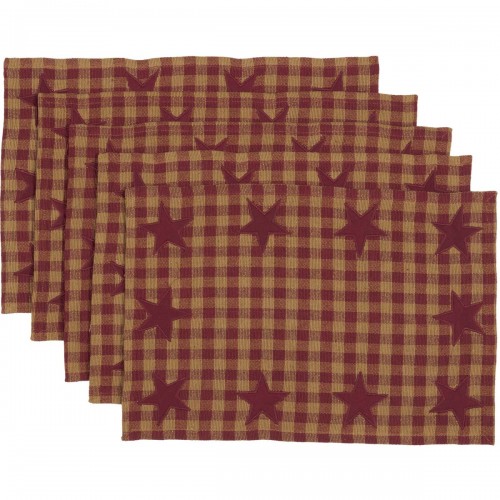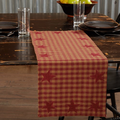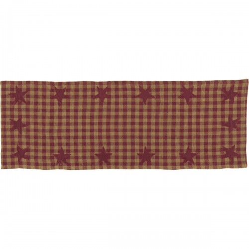 Burgundy Star Country Vintage Tan Burgundy Check Chair Pad 14×14 – VHC Brands