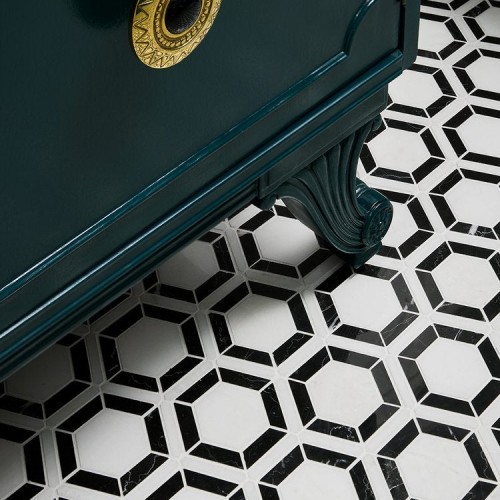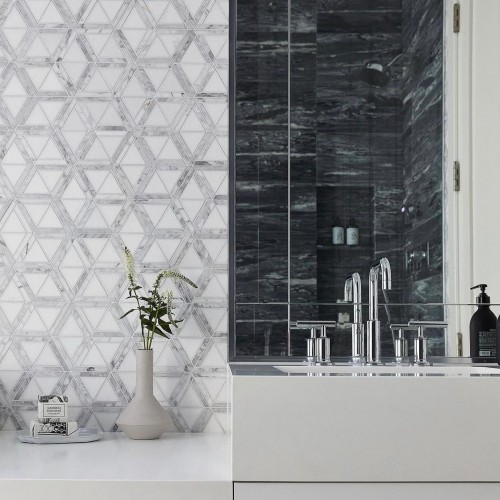 Grid Thassos & Basalt 12″ x 12″