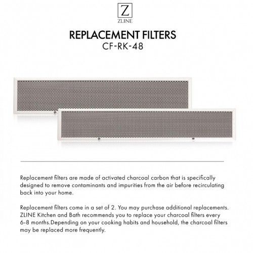 ZLINE Charcoal Filters (Set-2)-48″ Under Cabinet Range Hoods, CF-RK-48