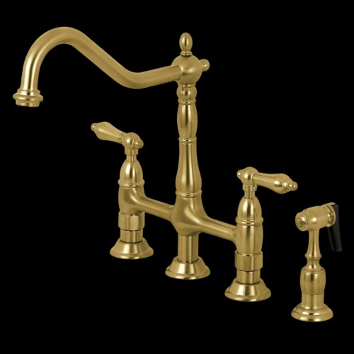 Two-Handle 4-Hole Deck Mount Bridge Kitchen Faucet with Brass Side Sprayer, Oil Rubbed Bronze