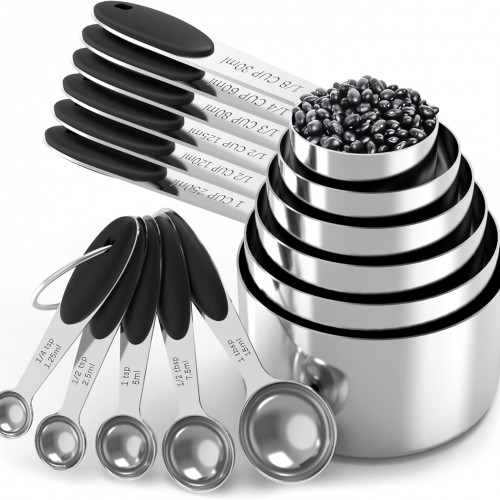 - Non-Slip Silicone Handles: Unlike slippery all-metal measuring tools, our stainless steel cups/spoons have heat-resistant silicone grips (450°F) for a secure hold—even with oily or sticky ingredients