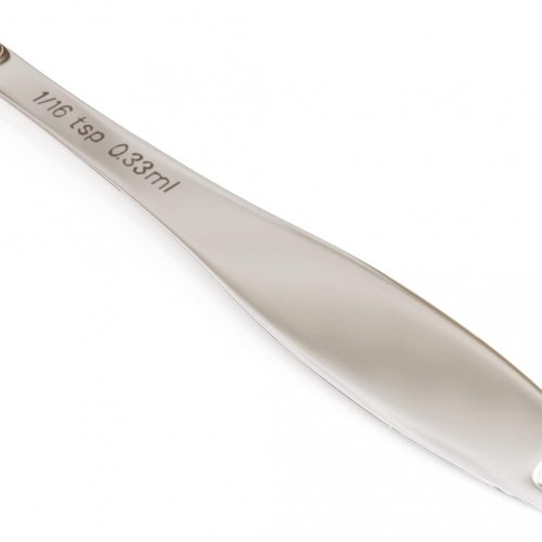 - Precise Scales – The measuring spoon is so precise that it can be the perfect partner for your cooking. The teaspoon has a clear scale on the handle in US and metric.⬤1/16 Tsp | 0.33 mL | 0.33 cc | Pinch