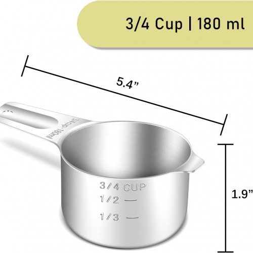 - 【Clear Marking】The handle is engraved with the metric and US marking (180 ml | 3/4 CUP) and will not wear out with further use. The cup also has an embossed marking, so you can measure 1/2 and 1/3 cup of liquid or powder