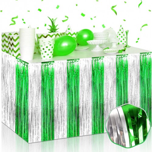 3 Pack 29 x108 Inch Black Gold Silver Foil Fringe Table Skirts Metallic Banner for Tinsel Streamer Garland Backdrop for Parade Floats Wedding Thanksgiving Birthday Christmas New Year Party Decoration