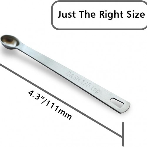 - 【Precise Scales】 The measuring spoon is so precise that it can be the perfect partner for your cooking. The one eighth teaspoon has a clear scale on the handle. ⬤1/8 Teaspoon | 0.625 cc | Dash