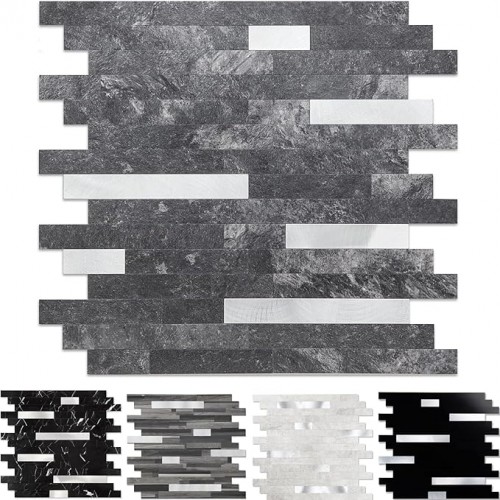 5 – Sheets Peel and Stick Wood Metal Tile Backsplash, Stick on Tiles for Backsplash Kitchen, Bathroom, Laundry Room, Camper, Fireplace (12” X 12”, Light Wood)