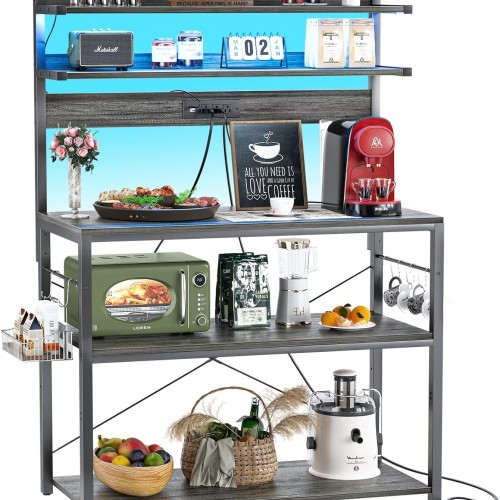 - 【Storage Rack with LED Strip】This coffee bar table features built-in LED lighting can support smart app control and IR control, multiple colors and flashing modes for your to choose. Led lights built-in music sync function can change the lights color with the rhythm of the sound and music, Try to DIY your kitchen, and enjoy the party or festival atmosphere anytime.