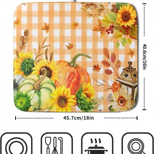 - 1【High Quality Material】:Our fall sunflower drying mat is made of high absorbent microfiber and the middle is made of composite spongedurable, reversible do not fade and comfortable. At the same time, it can protect your kitchen counter from scratching by the tableware.