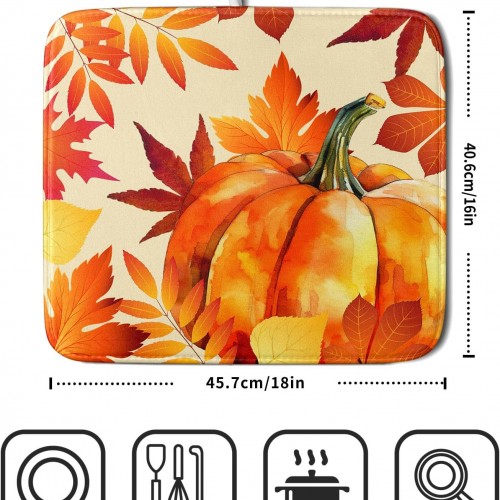 Autumn Pumpkin Maple Leaf Dish Drying Mat for Kitchen Counter,Thanksgiving Fall Holiday Drying Mat with Hanging Loop 16 x 18 Inch Microfiber Dish Drying Pad Dish Rack Drainer Mat for Coffee Bar