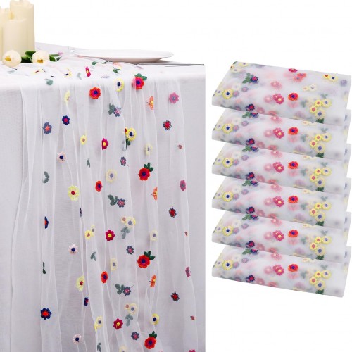 BINBE 12pcs Daisy Fall Table Runner Embroidery Gauze 10FT Florals Seasonal Tulle Holiday Birthday Kitchen Dining Table Decor for Home Party Red