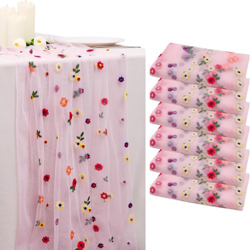 BINBE 12pcs Daisy Fall Table Runner Embroidery Gauze 10FT Florals Seasonal Tulle Holiday Birthday Kitchen Dining Table Decor for Home Party Yellow
