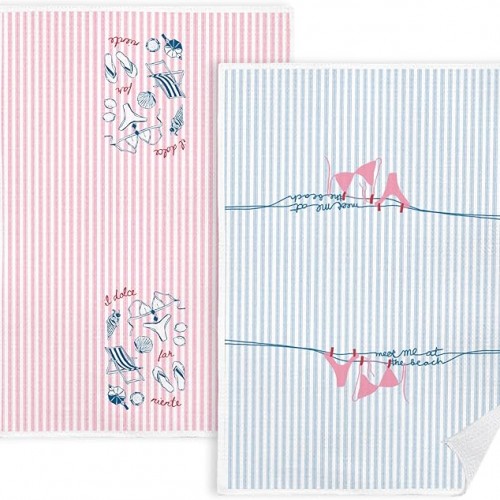 Blue and Pink Striped Summer Kitchen Towels Set of 2, Preppy Coastal Beach Dish Tea Towels for Kitchen Decor, Meet Me at The Beach Decorative Hand Towels for Bathroom, 16×24 Inch