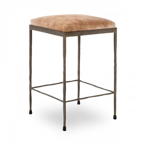 Expertly crafted with a hammered iron frame in dark bronze, the Bodica Stool features a luxurious hair-on-hide leather seat. Its unique texture, sturdy sidebars, and floor protectors make it a durable and stylish choice for kitchen islands.