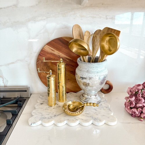 – Make a daring statement with the Brushed Silver Utensil Cup Holder, featuring a stunning gold branch base. This versatile piece shines as a unique flower vase or a bold utensil holder, perfect for adding a touch of edgy elegance to any room.