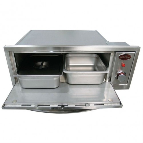 The Cal Flame 2-in-1 Pizza Oven and Food Warmer is the ultimate outdoor kitchen upgrade. Crafted from durable stainless steel, it seamlessly combines a powerful warming drawer and a wood-fired-style pizza oven in one compact unit. With room for an 18-inch pizza and up to 100 pounds of food, it offers both convenience and performance. A front viewing window, internal lighting, and flush-mount design ensure it looks as great as it functions.