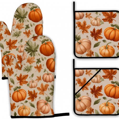 - Material: Oven mitts and pot holders sets include 2 baking gloves and 1 pot pads. Kitchen decor oven mitts are made of heat resistant polyester fabric, soft quilted cotton lining making, non-slip, heat resistant