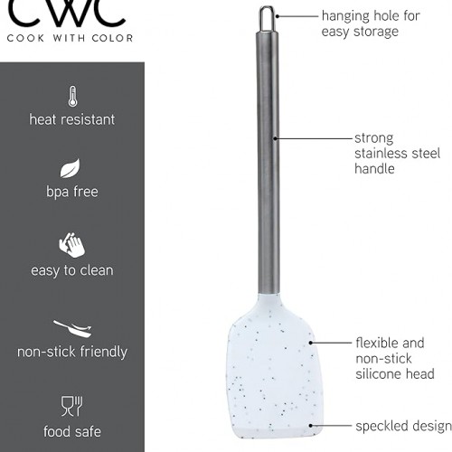 COOK WITH COLOR Silicone Cooking Utensils, Kitchen Utensil Set, Easy to Clean Silicone Kitchen Utensils, Cooking Utensils for Nonstick Cookware, Kitchen Gadgets Set, 5 Pieces, Speckled White