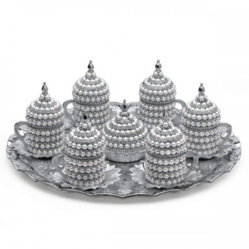 Authentic Turkish Coffee Cups and Saucers: Indulge in the true essence of Turkish and Arabic coffee with our set of 6 Ottoman-style crystal-coated cups and saucers. Complete with a tray and candy bowl, it’s the perfect ensemble for serving your favorite brews.