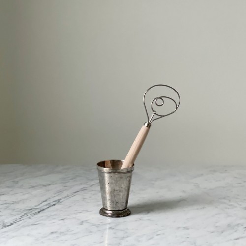 Beautiful Danish dough whisk. Useful for typical whisk tasks, but also acts as a paddle for mixing any soft dough. Plus, it’s beautiful design looks lovely hanging on a kitchen wall or displayed in a French crock.