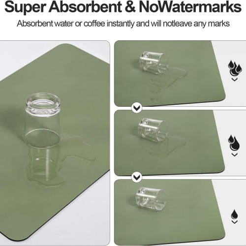 Dish Drying Mat for Kitchen Counter | Coffee Bar Mat for Countertops | Heat Resistant Drainer Mat with Non-slip Rubber Backed | Hide Stain Kitchen Absorbent Draining Mat | Green 16″x18″
