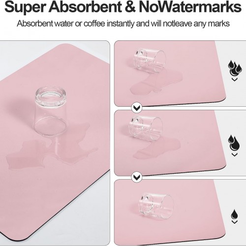 Dish Drying Mat for Kitchen Counter | Coffee Bar Mat for Countertops | Heat Resistant Drainer Mat with Non-slip Rubber Backed | Hide Stain Kitchen Absorbent Draining Mat | Pink 16″x24″