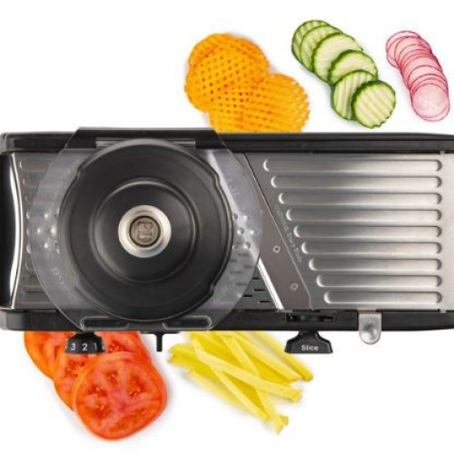 This egg slicer cuts through more than just boiled eggs. Try it on strawberries and mushrooms, too. Three different slicing discs feature thin wires that will slice, wedge and half eggs. Dishwasher safe.