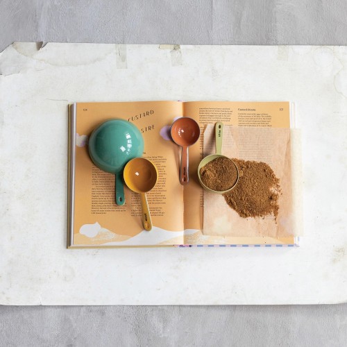 Effortlessly measure ingredients with this set of 4 colorful 6″ enameled stainless steel measuring cups! Each cup has a colored edge for easy identification. Durable and attractive, these measuring cups are a must-have for any kitchen.