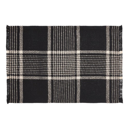 Create the perfect table settings with a timeless feel. The Eston Black Tan Plaid Placemat Set includes two placemats measuring 13×19 inches each. The table place settings are constructed with a single layer of a cotton polyester blend and includes a fringed edge. The black base features deep tan stripes in a traditional tartan plaid pattern.