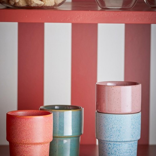 The Ewan Cup by Bloomingville comes in a set of four and is made of stoneware with fine variations in color and glaze. The Cups are stackable and combine practical function with a relaxed and vibrant look. The glaze ensures that each cup is unique.