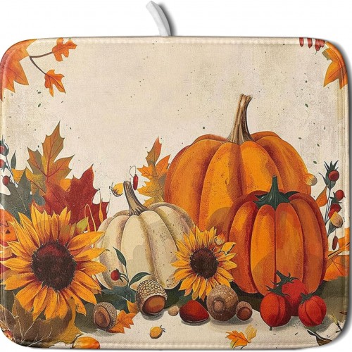 - Fall & Thanksgiving Decor – Blue pumpkin drying mats can add an chic holiday vibe and charm to your kitchen or coffee bar counter. The drying mat for kitchen counter with a unique hanging rope design that can be hung without occupying any space.