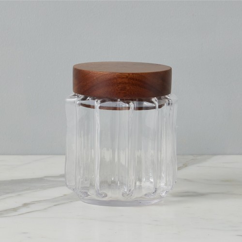 Fluted Glass Canister, Wood Lid, Large