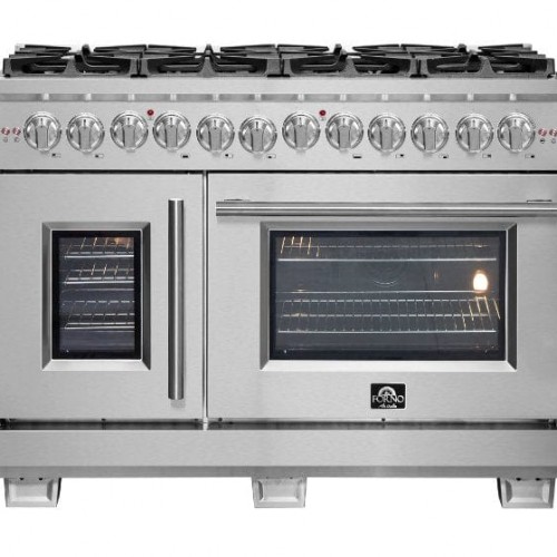 The 30″ Gagliano Gas Range brings professional styling and quality into your home kitchen with its durable stainless-steel design. Unique french doors take up to 12″ of less open door space and easily open simultaneously with one hand. Cooktop has 5 sealed burners with a total stove top output of 68,000 BTU including 1 sealed dual-ring burner for simmering delicate tasks like melting chocolate or cooking sauces, giving you the ability to cook up whatever delicious meals you desire. The continuous cast iron grates allow for even heat distribution and maximum stability of cookware mobility over a recessed enamel cooktop cavity which keeps spills and splashes contained and easy to clean. The 4.32 cu. ft. gas oven with a total output of 30,000 BTU is encased in a black enamel interior fitted with an internal convection fan, thermostat and regulator ensures to achieve fast, precision, and consistent oven cooking along for easy viewing is a 3-layer glass oven door window. Included are 2 electroplated oven racks and LP conversion kit. Housed in a high-grade stainless steel body and zinc knobs, this unit sports a stylish look that is built to last. All Forno products are backed by an iron clad 2-year warranty for your satisfaction.