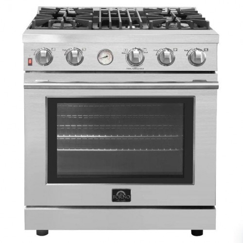 Forno Lazio – 30″ Dual Fuel Range • 5 Sealed Burner • Air Fryer and Griddle • FFSGS6196-30 30″ Stainless Steel