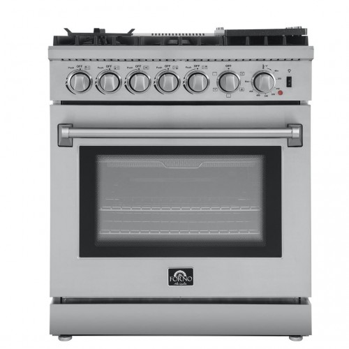 Forno Lazio – 30 in. All Gas Range with 5 Sealed Burner, Air Fryer Basket, and Griddle in Stainless Steel, FFSGS6276-30 30″
