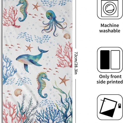 Giwawa Coastal Ocean Hand Towels Set of 2 Seahorse Whales Soft Microfiber Bath Towels Summer Fingertip Towels for Bathroom Kitchen Gym Spa Decor