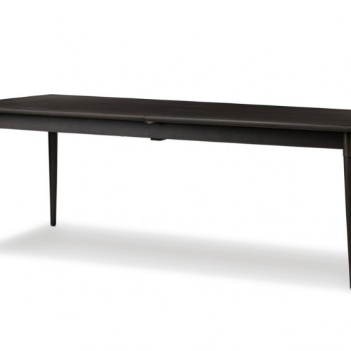 Style with flexibility. Finished in a classic black, a rectangular tabletop of mango veneer, solid mango legs and iron detailing speak to Scandinavian modernism. Expansion from 84″ to 104″ means more space when company calls.