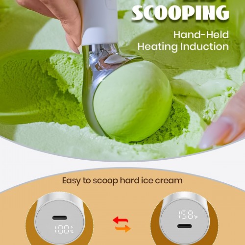 - 【Effortlessly Scoop Hard Ice Cream】This electric ice cream scoop designed for hard ice cream,No more waiting for it to soften. Just grip the handle of this heated ice cream scooper to start heating, no buttons needed. the icecream scoop quickly heats up to 158°F, allowing you to easily scoop ice cream scoops straight from the freezer or fridge. Enjoy your delicious ice cream right away!