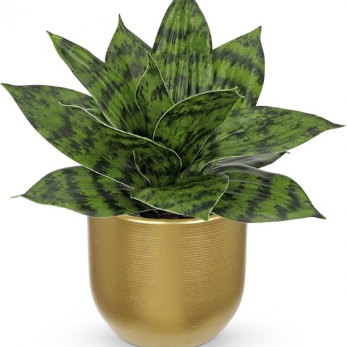 Hollyone Artificial Snake Plants 9″ Faux Agave Succulent Plant Potted in Gold Pot Fake Sansevieria Aloe Tropical Plant for Desk Modern Office Home Bathroom Indoor Outdoor Decor