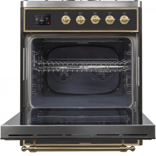 ILVE 30″ Majestic II Dual Fuel Range Glossy Black Brass Trim UM30DNE3BKG