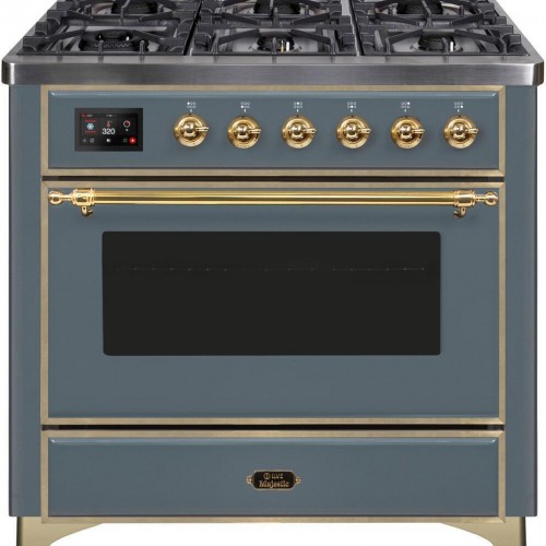 ILVE Majestic II 36 Inch Dual Fuel Liquid Propane Freestanding Range in Blue Grey with Brass Trim UM09FDNS3BGGLP