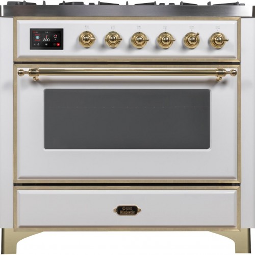 ILVE Majestic II 36 Inch Dual Fuel Liquid Propane Freestanding Range in White with Brass Trim UM096DNS3WHGLP