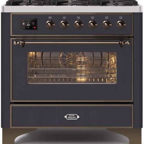 The 36″ Majestic freestanding range brings the ultimate cooking experience to your kitchen. The large European Convection oven gives you the power to experiment with your dishes and get even cooking, while the full-width dish warming drawer gives the option to use the residual heat of the oven to keep cooked food warm or warm your dishes before serving. The cooktop features semi-sealed burners with various BTUs to cook whatever you want, however, you want.