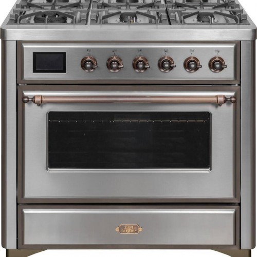 The 40″ Majestic freestanding range brings the ultimate cooking experience to your kitchen. The large European Convection oven gives you the power to experiment with your dishes and get even cooking, while the full-width dishwarming drawer gives the option to use residual heat of the oven to keep cooked food warm or warm your dishes before serving.The cooktop features semi-sealed burners with various BTUs to cook whatever you want, however you want.